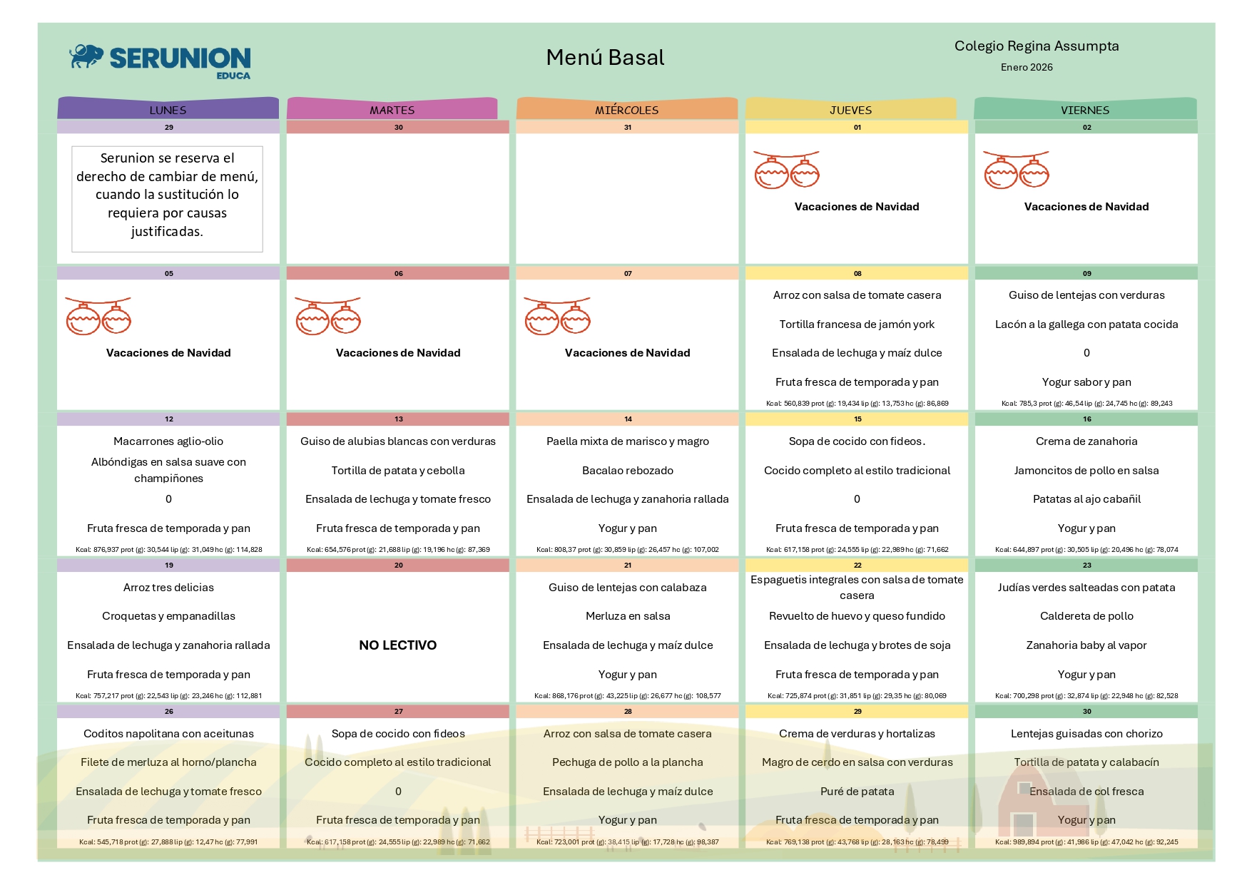 Como empresa responsable del comedor escolar de su centro, SERUNION EDUCA vela por cuidar diariamente a su alumnado con una alimentación saludable y un proyecto educativo didáctico y divertido en línea con el ideario de ESCOLAPIAS.
